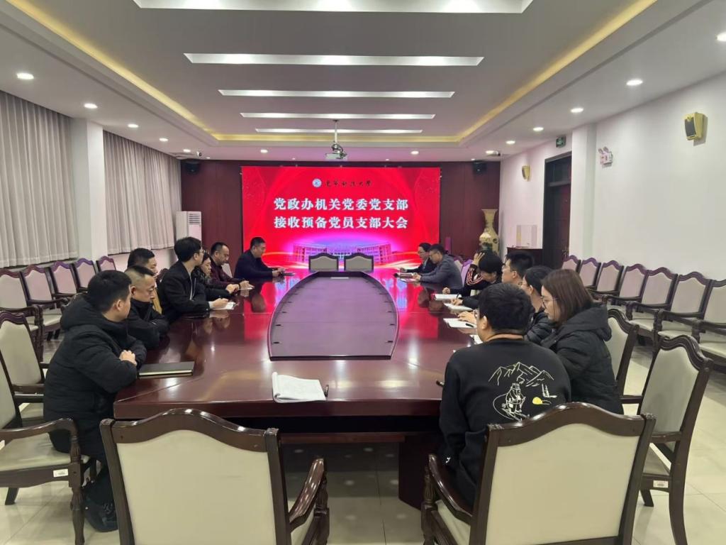 12月19日,党政办机关党委党支部在校部120(东)会议室召开接收预备党员支部大会,就发展对象单译欧同志能否接收为预备党员事宜进行讨论和表决。会议由党支部书记李宁主持。