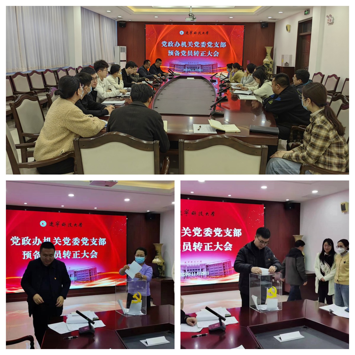 11月29日下午,党政办机关党委党支部在机关楼120(东)会议室召开党支部预备党员转正大会。党支部书记李宁主持会议。