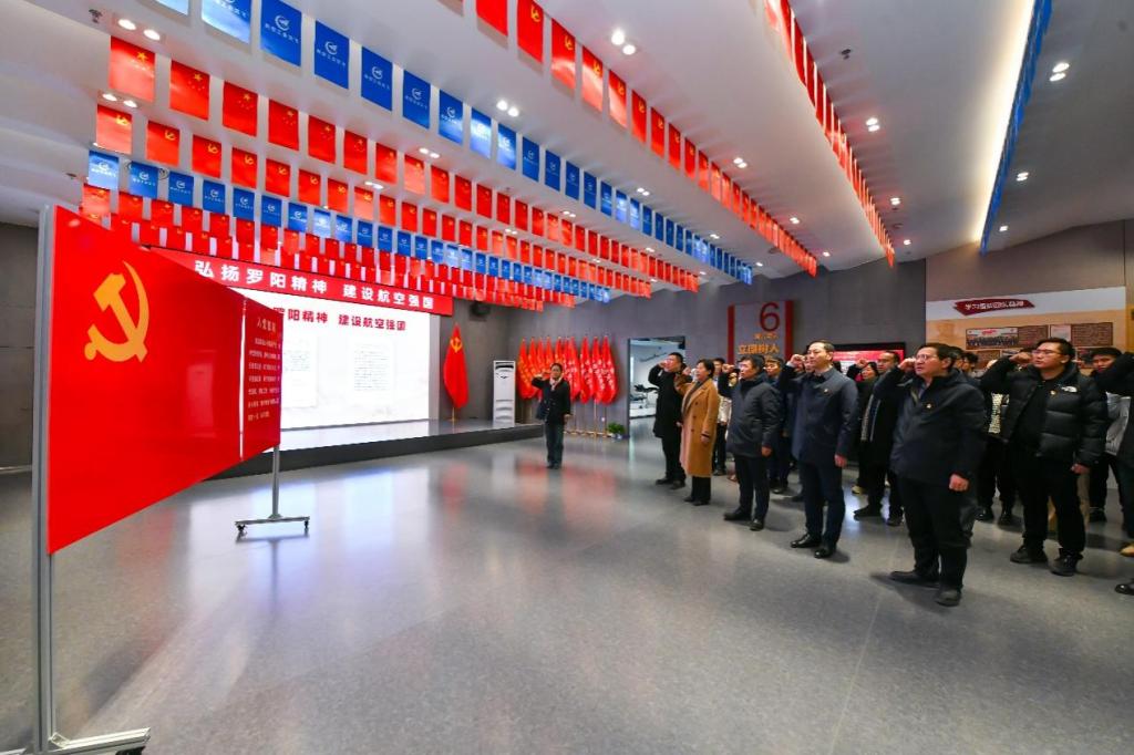 随后,党员们来到了沈飞航空博览园。博览园主展馆分为序馆、蓝天梦圆馆、航空报国馆、振翮高飞馆、创新超越馆、功炳天疆馆、展翅翱翔馆和罗阳纪念馆8个展馆,分主题展示了从早期国产歼击机的研发历程到现代先进战机的科技创新成果,展示了我国航空工业在国际合作和技术交流方面的成就,展望了未来中国航空工业的发展趋势和愿景。党员们通过观看歼5、歼教6、歼8、歼11、鹘鹰等一架架战机,感受到了国之重器的威严;从罗阳同志先进事迹中,学习了一代代航空人踔厉拼搏、奉献蓝天的航空报国精神,深刻体会到了辽宁作为新中国航空工业发祥地之一在党和国家战略全局中具有的特殊重要地位。参观最后,全体党员面向党旗重温入党誓词。