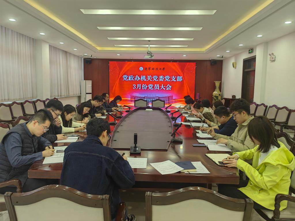 3月22日上午,党政办机关党委党支部在机关楼120(东)会议室召开党员大会,开展集体学习和“读看思研”活动。党支部副书记姜杰主持会议。