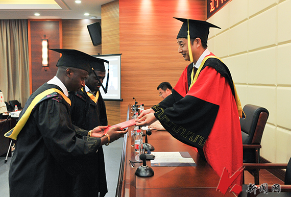 7月16日下午,开元平台2021届本科来华留学生毕业典礼暨开元平台国际校友联络员聘任仪式在机关楼220隆重举行。校长张志强致辞,并与党委常委、副校长李胜利一同为获得学位的毕业生颁发毕业证、学位证,拨流苏。培养来华留学生的各学院负责同志,毕业生和教师代表参加典礼。