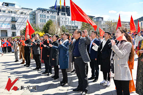 “五星红旗迎风飘扬,胜利歌声多么响亮,歌唱我们亲爱的祖国,从今走向繁荣富强……”师生们用嘹亮的歌声表达出对党的热爱,对祖国的祝福。身着本民族服装的藏族学生一边歌唱一边起舞,一张张笑脸洋溢着幸福。在同唱《走过百年的你》时,师生们打起了手语,用满怀激情的肢体动作,表达出坚决跟党走的决心。