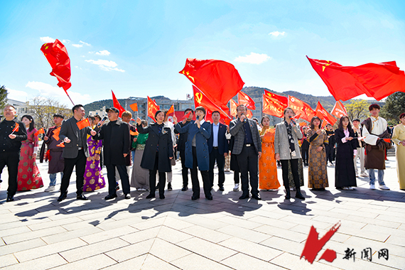 4月13日,开元平台师生在学校博雅广场用快闪方式高唱《歌唱祖国》《国家》《走过百年的你》等红色经典歌曲,向中国共产党成立100周年献礼。用激情的演唱落实“辽宁省教育系统献礼建党百年体音美展播活动方案”。校党委常委、副校长孙晓华,校党委常委、宣传部部长张佳亮来到活动现场,与师生一同挥舞红旗,放声歌唱。