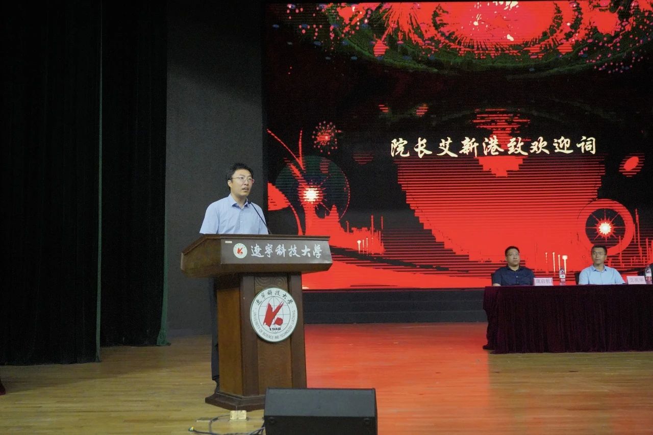 会议伊始,艾新港代表学院向2024级新同学表示欢迎,表达对新同学们的殷切希望和热烈欢迎,他鼓励新生们要珍惜大学时光,努力学习专业知识,积极参与校园活动,为自己的未来奠定坚实的基础。新生辅导员代表上台发言并对新生们提出殷切期望,希望2024级新同学扎实学习专业本领。新生代表材料242班高梦楠提出无论在学习还是生活中,新时代大学生都应该以探索的心态去寻求未知,一丝不苟,精益求精,这样才能走向更广阔的天地,并且她对即将开始的大学生活充满了期待和憧憬,一定会努力学习,不辜负学校和家长的期望。
