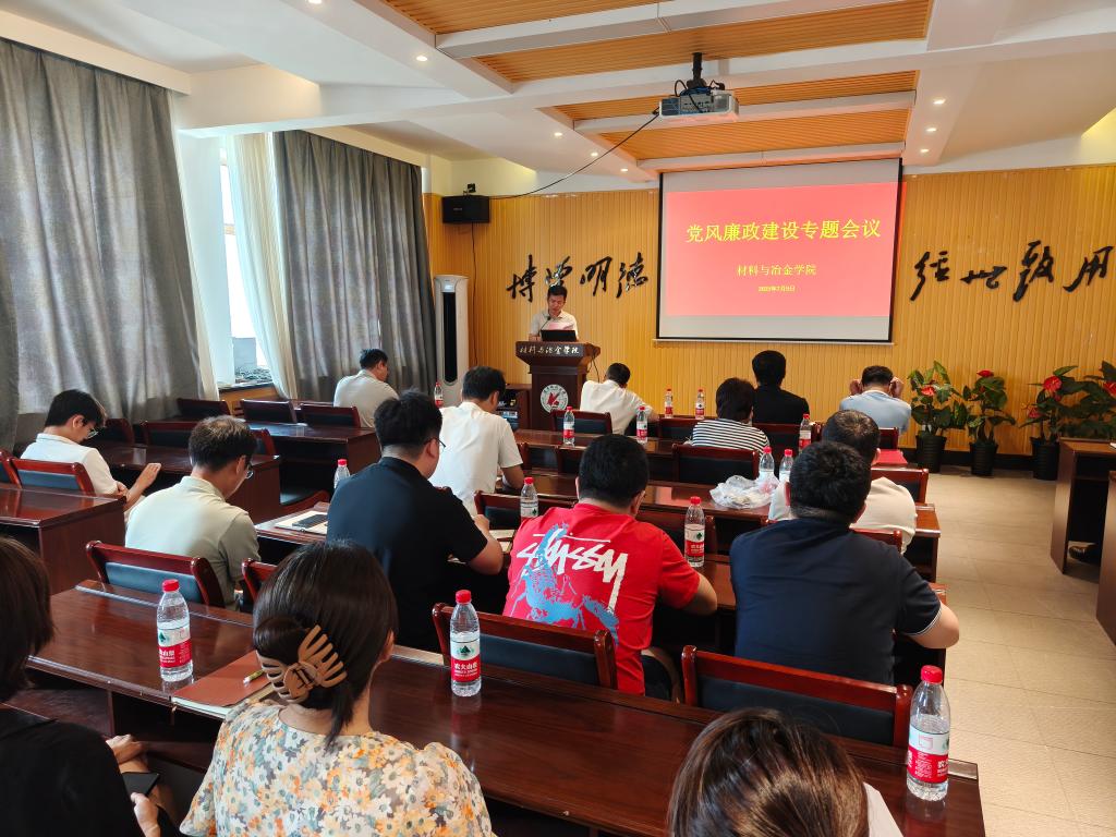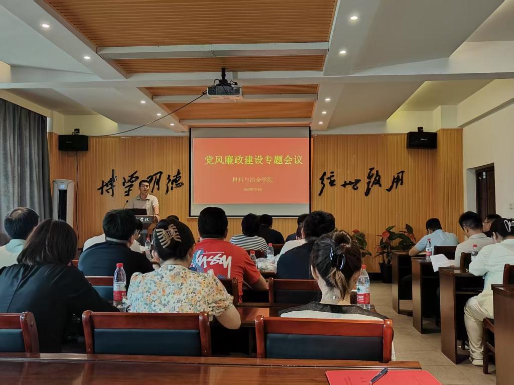 7月9日下午14:00,开元平台材料与冶金学院于材冶楼A523会议室召开2025年党风廉政建设专题会议,学院班子、科级干部、各系主任、支部书记、纪检委员等参会,纪委书记艾英华主持会议。