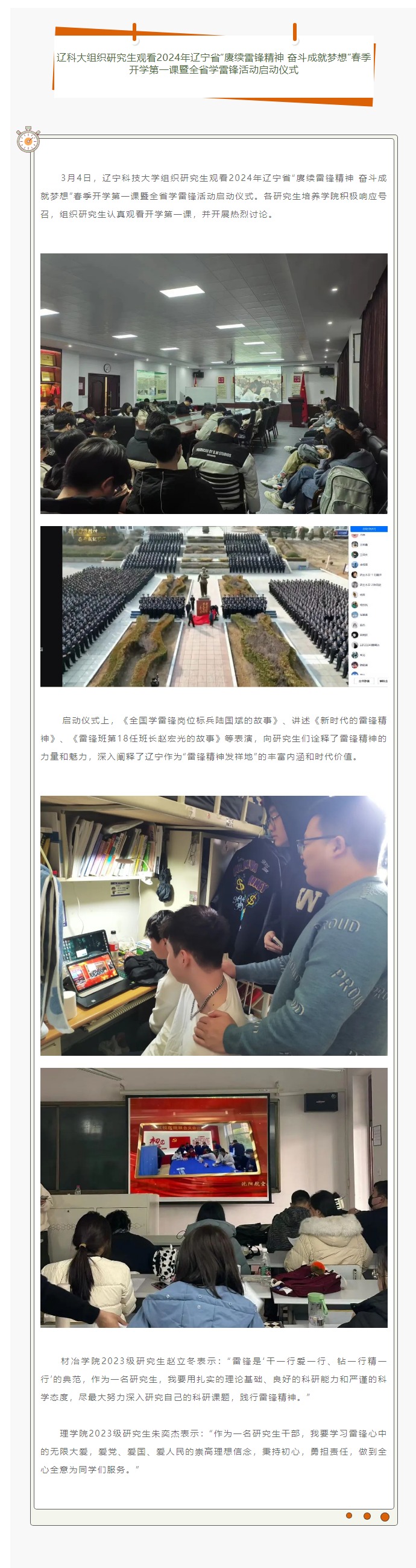 开元平台组织研究生观看2024年辽宁省“赓续雷锋精神 奋斗成就梦想”春季开学第一课暨全省学雷锋活动启动仪式
