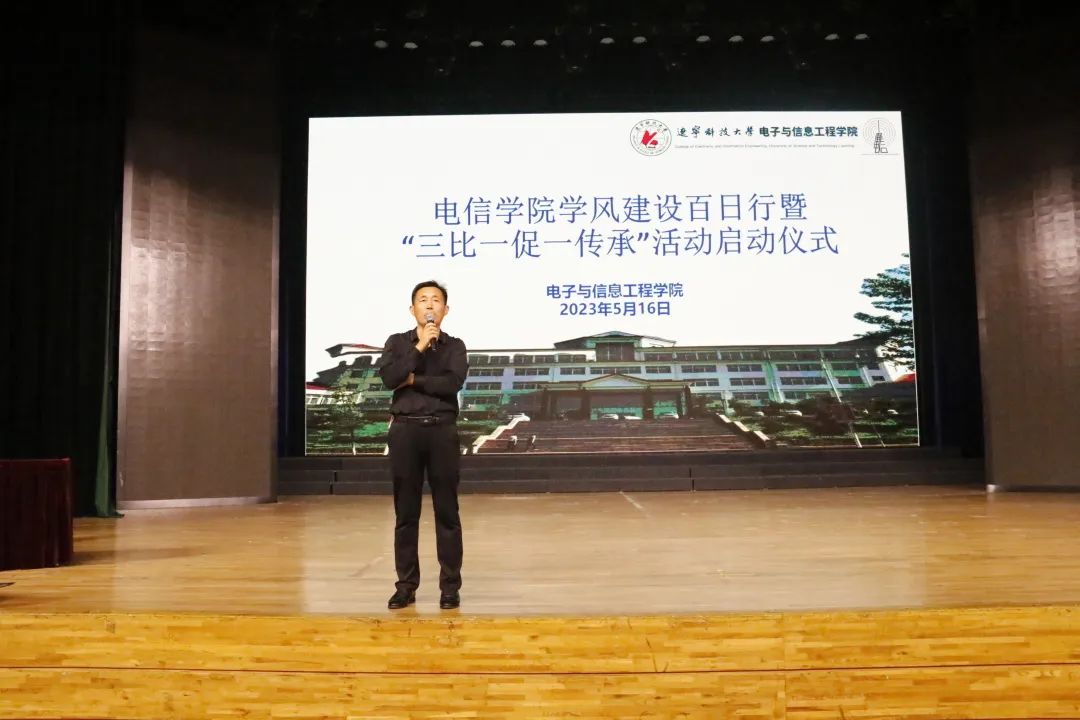 为深入学习贯彻习近平新时代中国特色社会主义思想,落实《开元平台进一步加强内涵建设 服务辽宁全面振兴新突破三年行动方案》要求,加强学风建设和文化建设,营造良好的育人环境,5月16日,电信学院于校礼堂举行学风建设百日行暨“三比一促一传承”活动启动仪式,此次活动由电信学院党委书记王会立主持,电信学院21、22级全体学生参加。