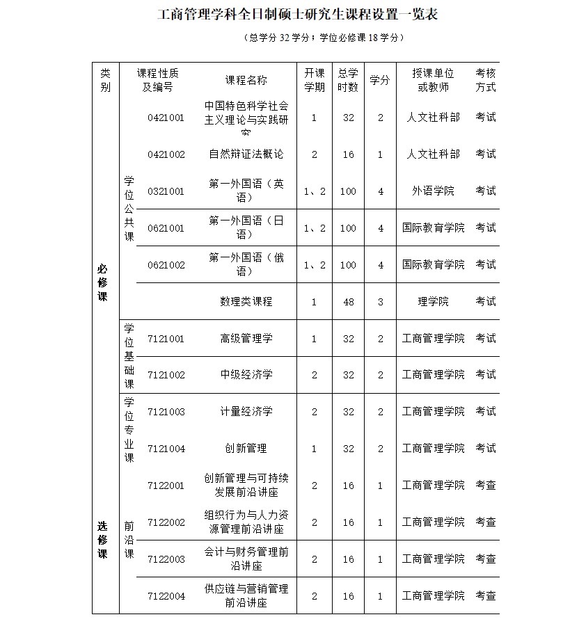3)学分制。总学分为32学分,一般在导师指导下按照其研究方向的要求选修研究生课程。