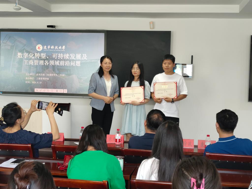 还有其他多名研究生同学在报告会上分享了他们的研究成果,各位评审老师与参会的研究生就分享的内容进行交流、点评,并评选出了此次学术研讨会的优秀获奖者。同学们的报告涉及工商管理学科多个前沿领域,研究思路清晰,成果创新性强,充分展现了新时代管理学院学子的风采。