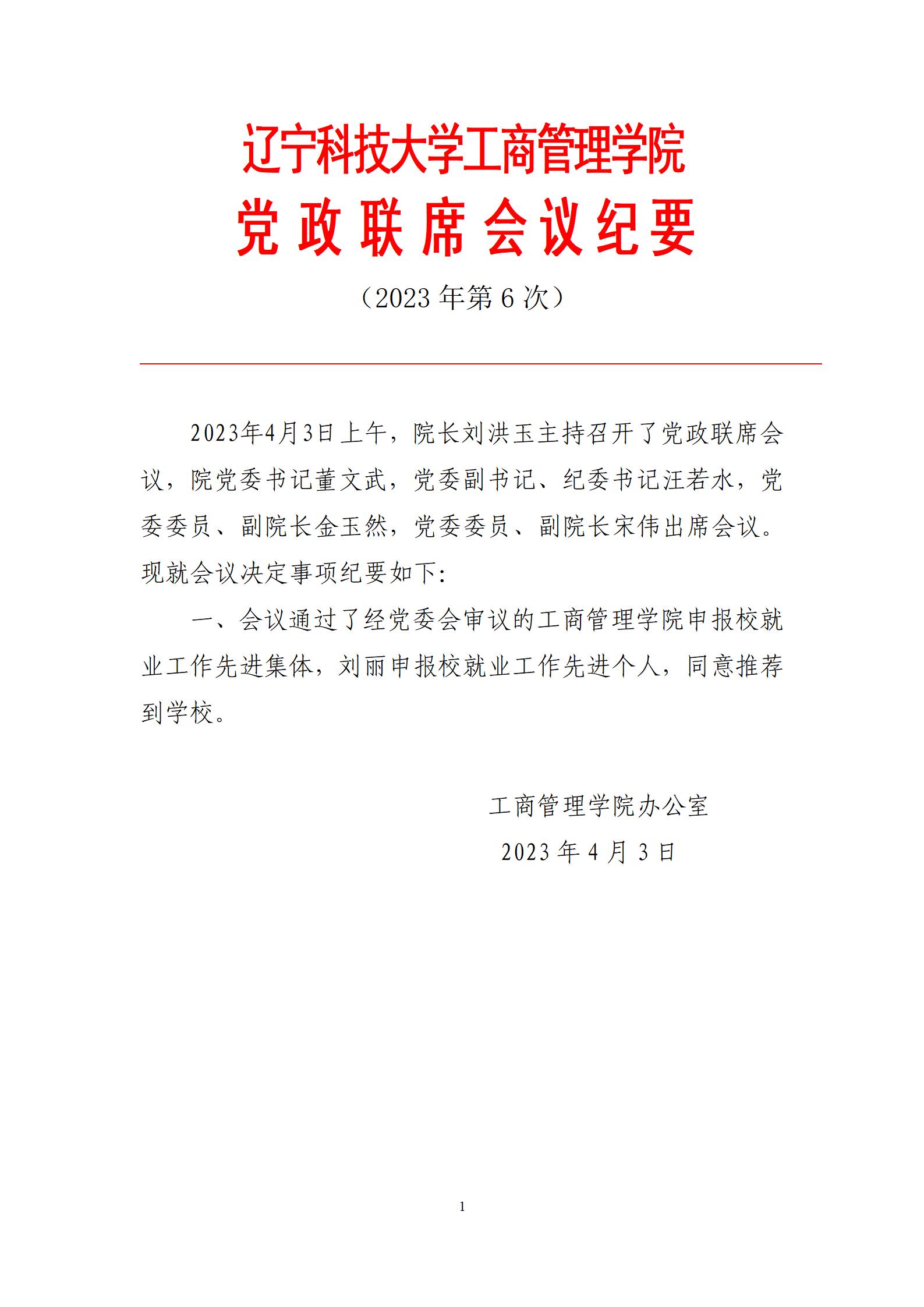 开元平台工商管理学院党政联席会议纪要(2023年第6次)