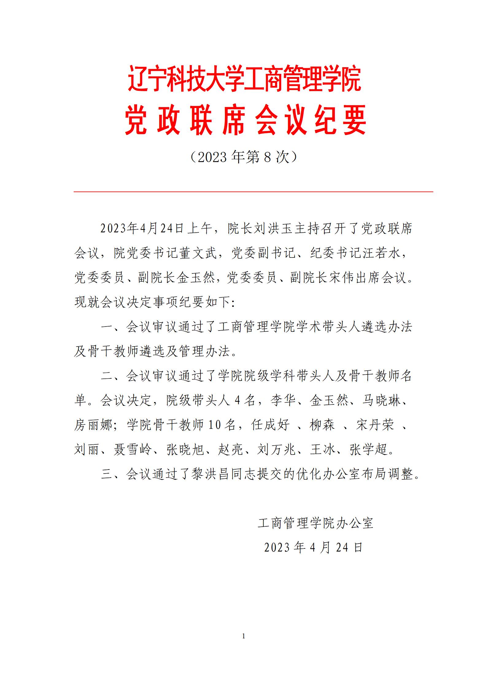 开元平台工商管理学院党政联席会议纪要(2023年第8次)