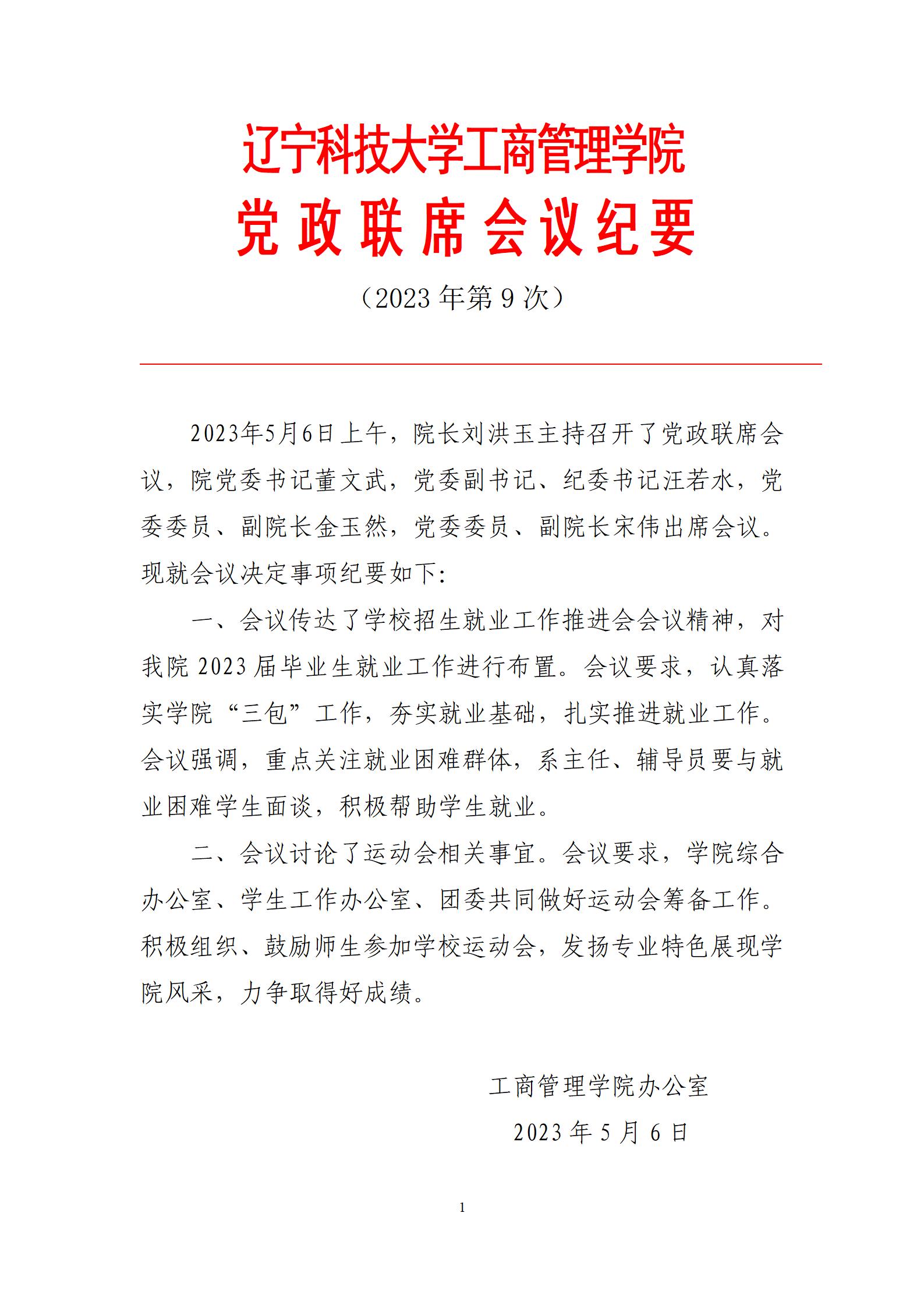开元平台工商管理学院党政联席会议纪要(2023年第9次)
