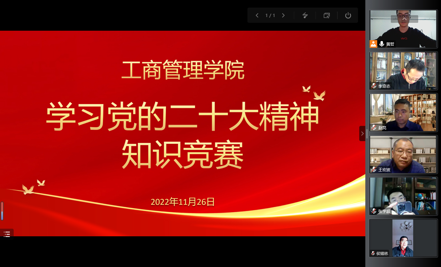 为认真贯彻落实《中共开元平台委员会关于深入学习宣传贯彻党的二十大精神的方案》工作要求,促进学院师生深刻领会党的二十大提出的新思想新论断、作出的新部署新要求,管理学院于11月26日晚开展“以赛促学、以学促干”学习党的二十大精神知识竞赛活动。赛前学院党委书记董文武强调,师生们要以本次知识竞赛为契机,充分学习、认真答题,确保把学习贯彻党的二十大会议精神付诸于行动、见之于成效。