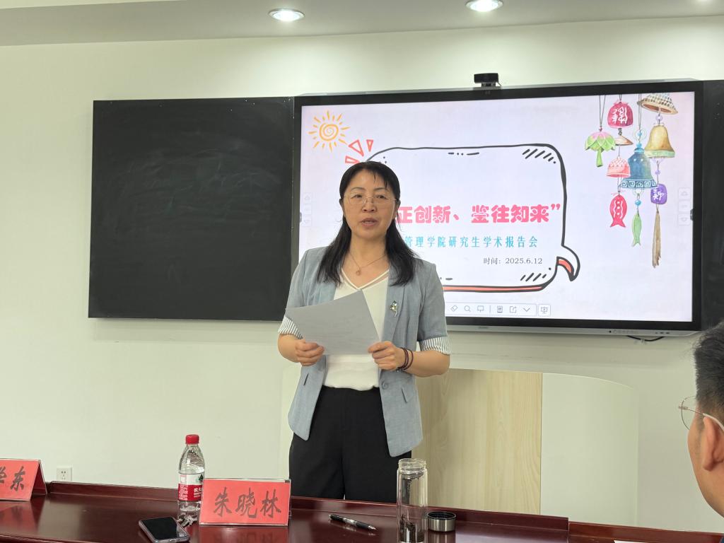 最后,朱晓林教授为报告会做总结和点评,她对研究生们的研究成果给予了高度评价,鼓励同学们从选题价值性和内容逻辑性以及方法科学性三个方面加以改进,同时勉励同学们要以问题为导向,始终保持探究真理的初心,时时处处讲认真,不断提升科研素养和能力。