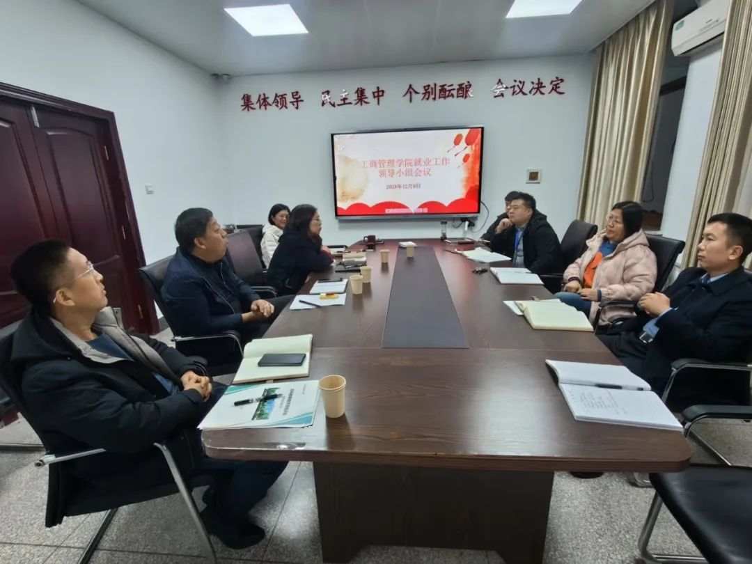 12月9日,工商管理学院在明信楼B409召开就业工作领导小组会议,学院领导班子,系(室)主任参加会议。