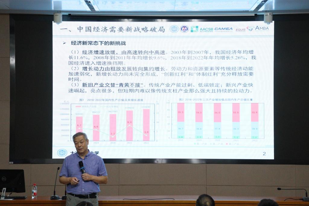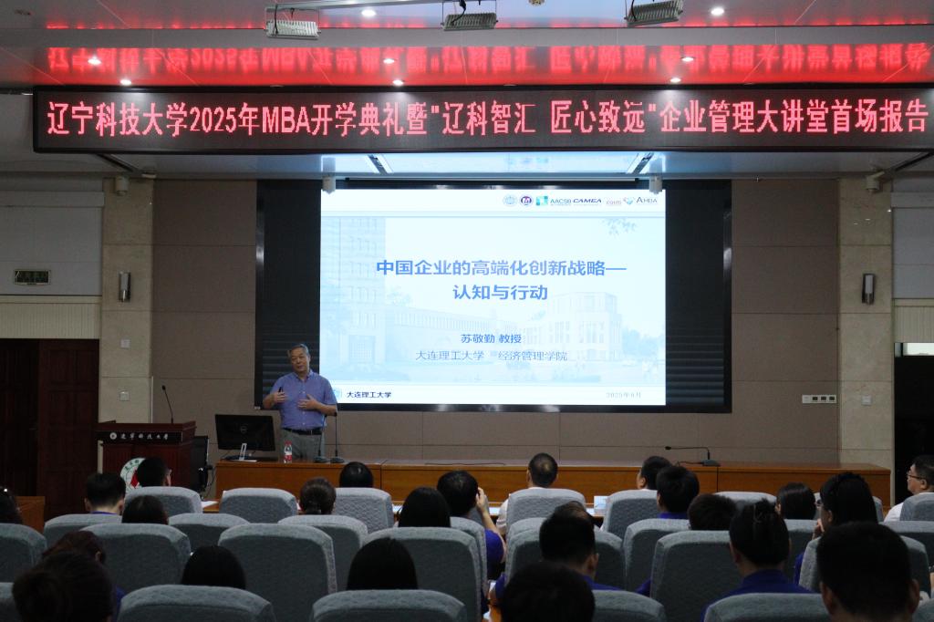 2025年8月30日,开元平台工商管理学院迎来了一场思想盛宴——MBA2025级开学典礼暨“辽科智汇·匠心致远”企业管理大讲堂正式启动。首场报告特邀国家级领军人才、大连理工大学苏敬勤教授作题为《中国企业的高端化战略—从认知到行动》的专题演讲。讲座由工商管理学院院长金玉然教授主持,2025级全体MBA学员及部分教师参与本次论坛。