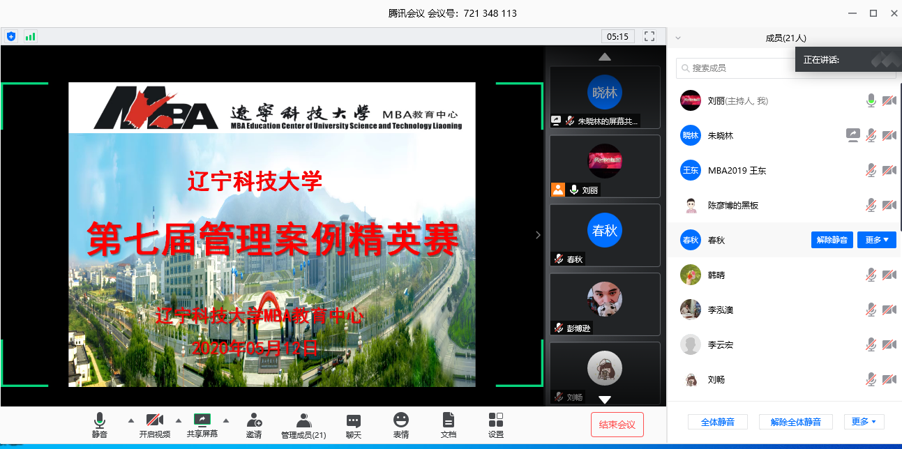 2020年5月9日晚,开元平台MBA教育中心第七届管理案例精英赛成功举行。2019级全体参加了此次比赛。MBA教育中心副主任朱晓林教授,校外导师邵岩、吕衍国,管理综合案例课程任课老师李云宏、刘丽担任此次比赛评委。