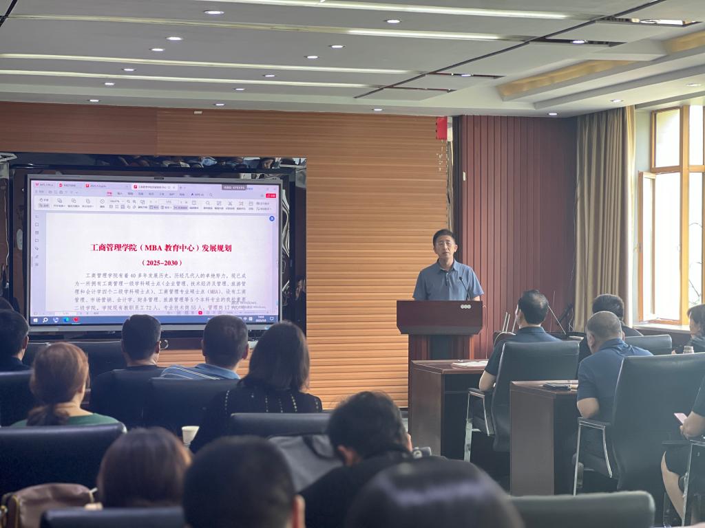 学院院长金玉然作《工商管理学院(MBA教育中心)发展规划(2025-2030)》报告,从八个方面对学院未来发展进行了规划。在发展目标方面,工商管理学院将深化“内涵式”发展,大胆创新,经过五年时间,力争成为人才培养特色鲜明、学科建设进步、教师幸福感提升、具有更广泛社会影响力的省内一流商科学院;在党建引领层面,学院将持续强化党组织在学院各项工作中的领导核心作用;在本科人才培养层面,将全面深入贯彻“1+3+2”教育教学体系改革,通过高质量修订《2025版专业人才培养方案》,打造以人工智能、绿色低碳、国际化为核心的新文科专业特色,此轮修订中,学院各专业已经开设《人工智能营销》《市场调查与商业智能》《智能广告》《人工智能与商业分析》《营销大数据量化分析与AI大模型应用》《智能财务管理》《碳会计与碳审计》《碳商学》《企业碳管理》《ESG理论与实践》《International Financial Reporting and Analysis》《Business and Technology》《数智人力资源管理》《数智物流管理》《智慧供应链管理》《数智化工作分析》《智能招聘》《数智化薪酬管理》《数据驱动的管理方法与应用》等近30门新课,平均每个专业8门新课。学院将启动面向AI+绿色低碳的100+教育教学改革计划、100+校外导师专家库计划、10+优质实习实训就业基地计划、10+高质量特色教材计划、1+产业学院计划、特色“微专业”计划、40+校企共建课计划、本科毕业论文质量提升计划、本科生国际交流计划;在学科建设与研究生培养方面,学院将大幅度优化学术研究生和MBA研究生人才培养方案,增设“数智会计与财务管理”“智慧物流与供应链管理”方向,增设《通用人工智能基础》《大数据与商务智能》《基于人工智能的科研论文写作》《智能营销》《ESG 与企业社会责任》《数字化转型与AI战略》等特色课程,修订并提升全日制硕士研究生毕业学术成果要求,加速推进MBA案例建设,通过“双盲外审”“双盲答辩”“对需要重大修改论文引入盲审后评价”等措施提升MBA毕业论文质量;在科学研究与师资队伍建设方面,学院将加强学科团队建设,推动有组织科研,加强导学团队建设,积极培育国家级科研项目,启动10+专著计划,打造开元平台工商管理学院品牌国际/国内会议、打造“辽科智汇·匠心致远”企业管理大讲堂IP、全方位助力青年教师成长;在文化建设方面,学院将践行“无须扬鞭自奋蹄”“被需要是幸福的”等文化;在制度建设方面,将以“缺什么,就补什么强什么”为导向优化绩效激励指标,丰富荣誉体系,设立“钢都星火青年学者奖”“MBA教学名师奖”“金点子奖”等奖项;在就业、校友、工会和宣传层面,学院将建立200+优秀校友库,打造“健康工商”,加强媒体宣传等工作,为学院发展提供全方位支撑。