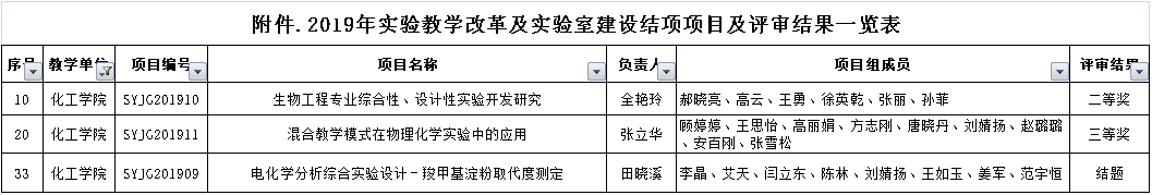 | 2 | 化工 | 吴鲲魁 | 构建化工原理合理课程体系的研究 | 方志刚、钟声、徐桂英、杨春杰、岳莉、刘洋、张雅茹 | 化工原理 | 2018-2019(1) 2018-2019(2) |