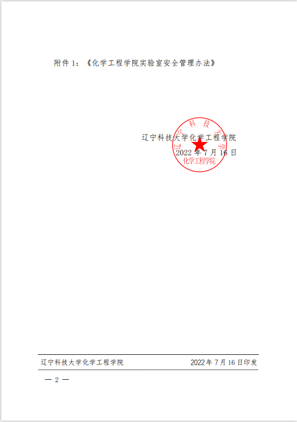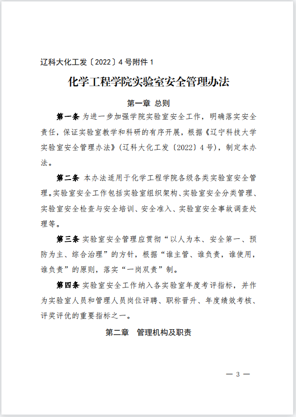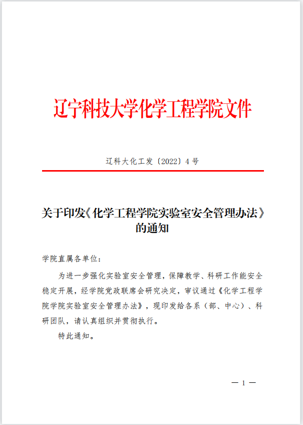 关于印发化学工程学院实验室安全管理办法的通知