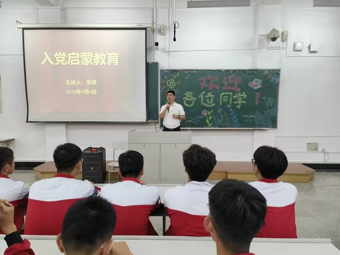 “青年是祖国的未来和希望,也是党的未来和希望,国家的发展都得益于一代代青年的努力和奋斗”。董德围绕理想信念、入党的基本条件、入党流程和党史理论等内容展开详细讲解,他勉励2024级新生端正入党动机,要坚定不移听党话、跟党走,怀抱梦想又脚踏实地,敢想敢为又善作善成,立志做有理想、敢担当、能吃苦、肯奋斗的新时代好青年!