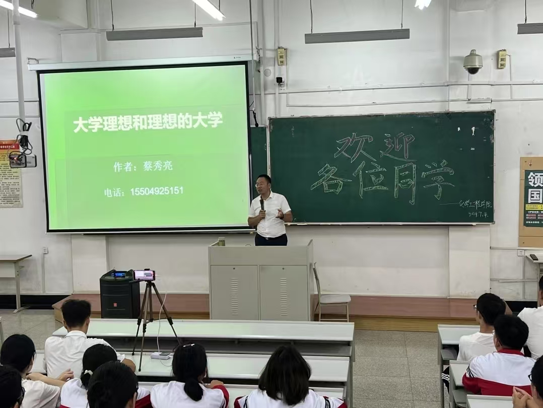 蔡秀亮以《大学理想和理想的大学》为主题讲话,他通过讲述化工学院校友的故事,引导同学们积极应对大学里遇到的困难与挑战,培养乐观向上的心态。蔡老师强调,同学们应该充分利用化工学院资源,在理想的大学里找到属于自己的大学理想,充实自己,提升自己。