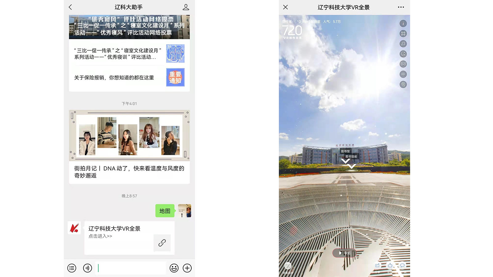 2.点击“开元平台VR全景”,即可获得校园地图。