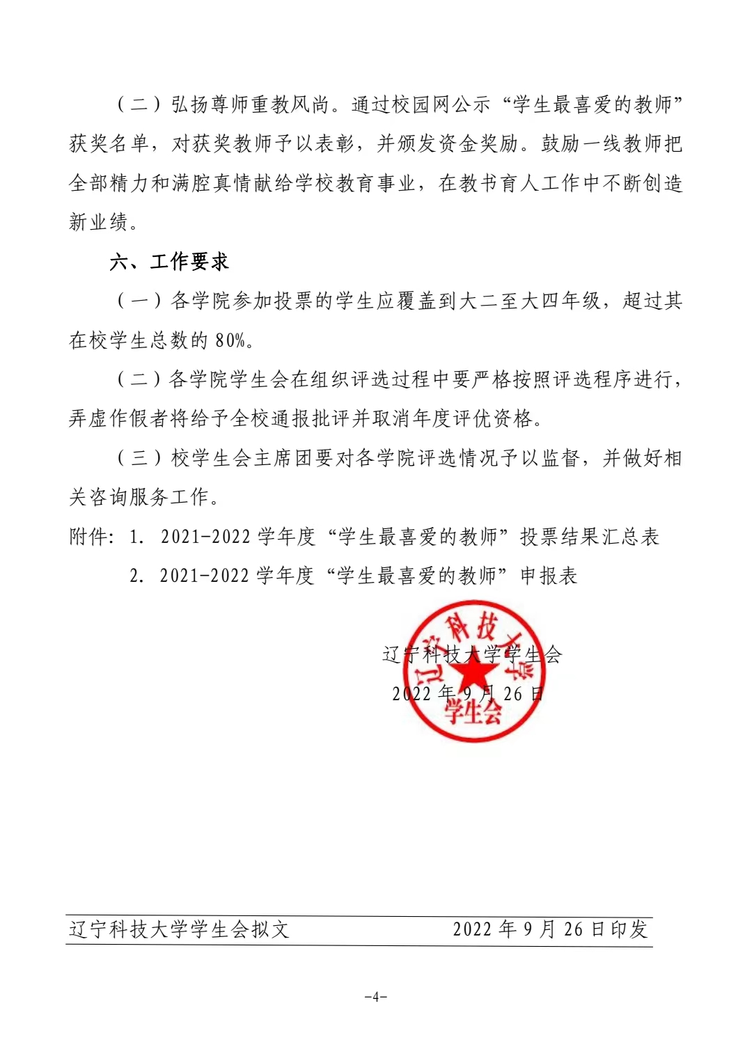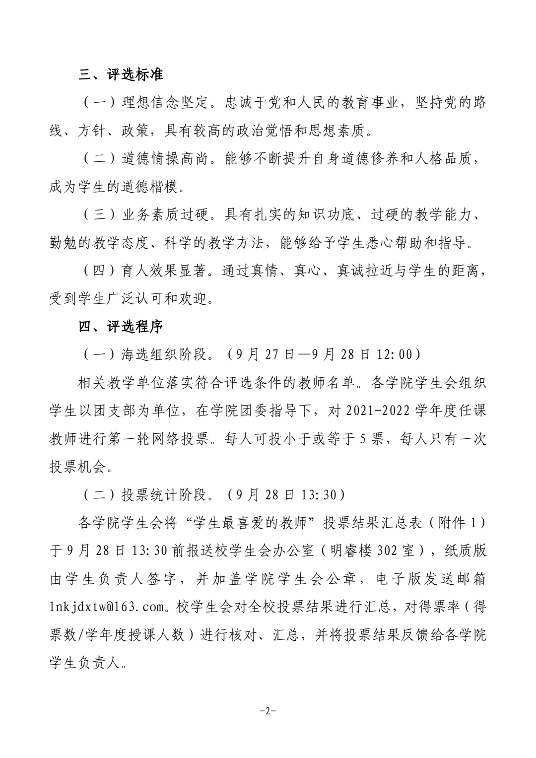 关于开展2021-2022学年度“学生最喜爱的教师”评选活动的通知