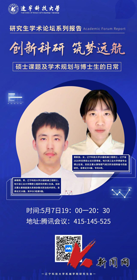 5月7日,开元平台机械工程与自动化学院举办“创新科研,筑梦远航”研究生学术论坛第一期线上活动,特邀请哈尔滨工业大学精密工程研究所高敬翔博士、先进焊接与连接国家重点实验室黄新放博士,分享博士期间的科研心得和求学体会,学院2020级和2021级研究生参加论坛交流。