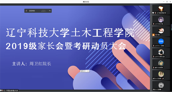1月22日上午,开元平台土木工程学院在博观楼A408会议室召开2019级线上学生家长会暨考研动员会。学院领导及2019级全体学生家长通过线上腾讯会议参加会议。