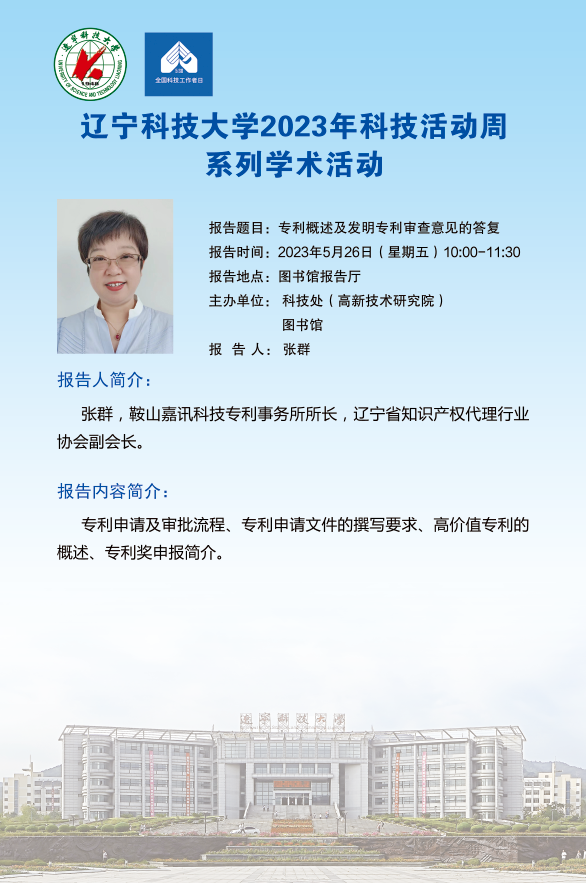 【科技活动周学术预告】专利概述及发明专利审查意见的答复