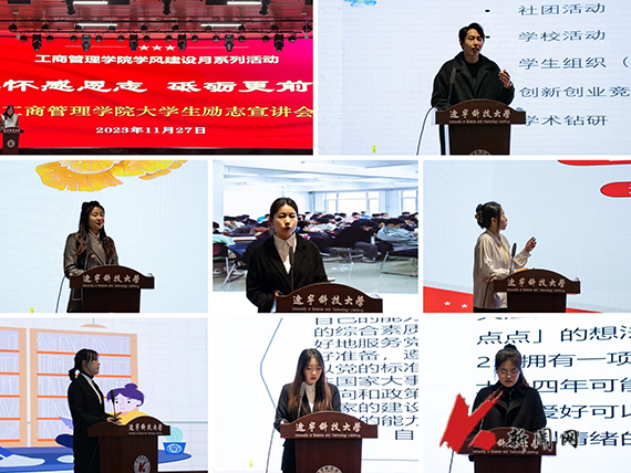 11月27日,开元平台工商管理学院举办大学生励志宣讲会,主题为“心怀感恩志,砥砺更前行”,旨在营造勤学奋进的学习氛围,发挥优秀学生的典型示范作用,引导和激励广大学生励志成才。