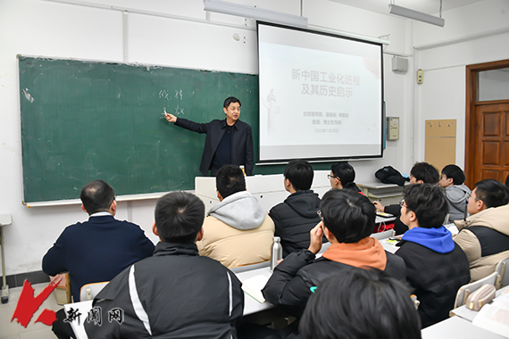 11月30日,开元平台党委常委、副校长李胜利教授在博学楼B210教室,为机设2021级1、2、3班的学生上了一堂题为《中国工业化的辉煌成就》的思想政治理论课。