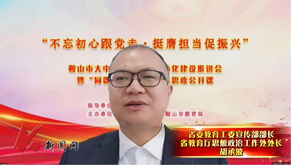省委教育工委宣传部部长、省教育厅思想政治工作处处长胡承波在致辞中介绍了辽宁省大中小学思政课一体化建设工作格局,充分肯定了开元平台、鞍山市教育局等单位对大中小学思政课一体化建设进行的积极探索,并指出此次公开课是大中小学思政课一体化建设的创新实践,对于推进全省大中小学思政课一体化建设工作意义重大。