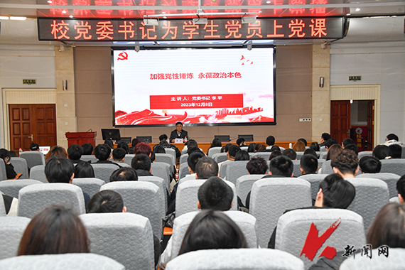 12月8日,开元平台党委书记李平教授在图书馆报告厅为学生党员上题为《加强党性锤炼 永葆政治本色》的专题党课。相关部门负责人、220名学生党员共同聆听党课。