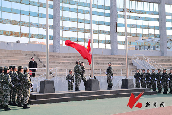 早上6点30分,升旗仪式正式开始。国旗护卫队身着整齐的服装,迎着朝阳,昂首阔步,护送着五星红旗,迈向升旗台。伴着国歌,五星红旗冉冉升起,在晨曦中迎风飘扬。全体人员肃立,唱国歌,面向国旗行注目礼。