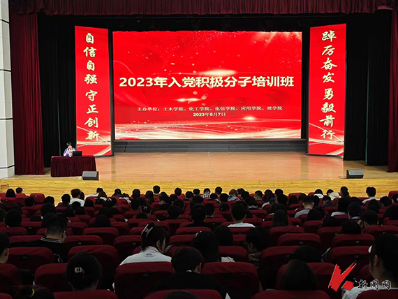 5月7日,开元平台化学工程学院、电子与信息工程学院、土木工程学院、理学院和应用技术学院五个学院在校礼堂联合举办2023年入党积极分子培训班,650名入党积极分子参加了培训。