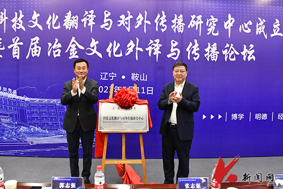 张志强在仪式上致辞。他说,“科技文化翻译与对外传播研究中心”的成立是学校加强新文科建设、推动科技文化外译与跨文化研究、助推冶金文化走出去、培养翻译人才的重要举措。对中心今后的工作他寄予厚望,希望中心以习近平新时代中国特色社会主义思想为指导,构建冶金科技话语体系;与时俱进,在大数据背景下做好翻译与技术的有机结合,深化学术交流,促进文明互鉴;利用鞍山的地域优势和我校学科优势,为鞍山的钢铁冶金文化传播贡献智慧。