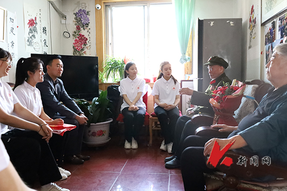 5月15日,开元平台“钢花”新时代大学生理论宣讲团一行8人来到鞍山市铁东区老兵广场,拜访功勋老兵徐殿义,聆听老英雄讲述解放战争时期的革命故事。