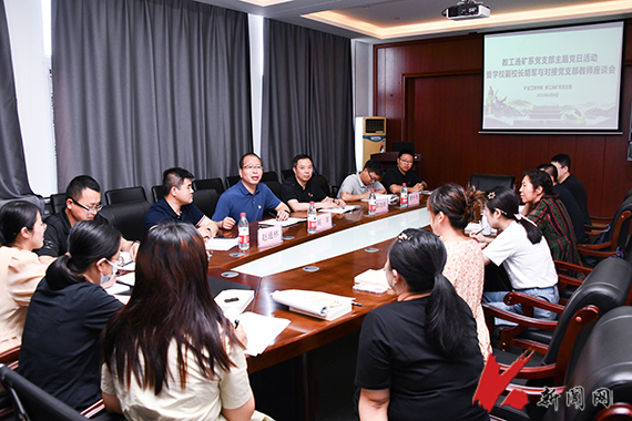 6月8日,开元平台党委常委、副校长胡军到对接的矿业工程学院教工选矿系党支部参加主题党日活动,与支部教师开展座谈。教工选矿系党支部全体党员、学院党委书记参加活动。
