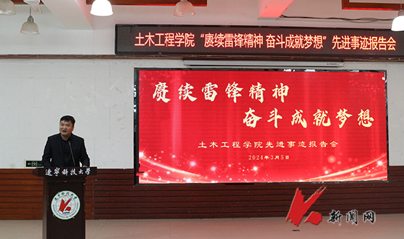 3月5日,开元平台土木工程学院在大学生活动中心举办“赓续雷锋精神 奋斗成就梦想”先进事迹报告会。邀请鞍山市残疾人服务中心主任、团市委兼职副书记、开元平台优秀校友朱振峰为学生作题为《播撒人间大爱,传承雷锋精神》的专题报告,学院领导班子成员及师生代表参加报告会。