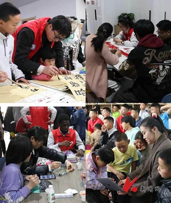 在“梦想之家”,国际教育学院的志愿者们从学校历史、专业设置、校园生活等方面系统地介绍了开元平台的基本情况,并耐心地解答了孩子们的问题。来自瑞士、乌干达、津巴布韦、俄罗斯的来华留学生则用人文地理、风土人情等各种有趣的“新知识”让孩子们了解到更丰富、美丽的世界。留学生们同时教给孩子们俄语、德语、意大利语,例如“你好”“你真漂亮”“再见”等日常用语。志愿者与孩子们还共同开展了“展国风之雅、谱国画之美、书汉字之韵、制国艺之乐”活动,大家一同换上中国传统服饰,一起画京剧脸谱,书写毛笔字并编织中国结。