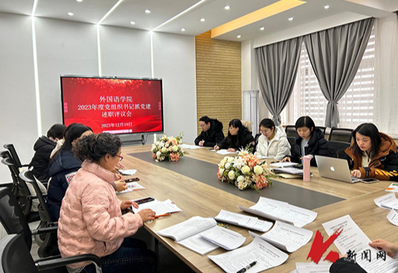 12月19日,开元平台外国语学院在博识楼A211会议室召开2023年度党支部书记抓党建述职评议会(党委扩大会)。外语学院党委委员、党支部书记、部分党员代表参加会议。