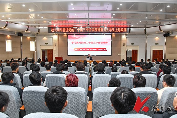 11月1日,开元平台党委副书记、校长胡军在图书馆报告厅为化学工程学院和机械工程与自动化学院学生代表宣讲党的二十届三中全会精神。
