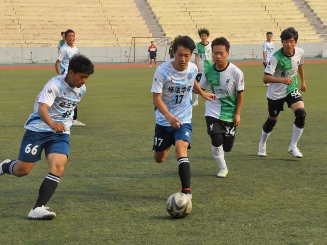 比赛场上,经法学院足球队员们全神贯注,配合默契,用有力的步伐与矫健的身姿尽情地展现着团队的力量与高超的球技。精妙的传球、凶猛的断球和漂亮的进球一次次将比赛气氛推向高潮。场外观众热情高涨,欢呼声、呐喊声让现场气氛不断升温。最终,经法学院足球队以3胜1平的成绩小组第一出线,随后以绝对优势挺进四强。