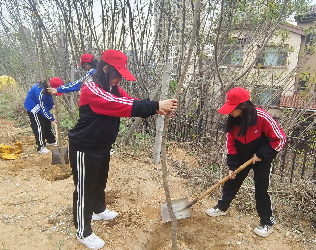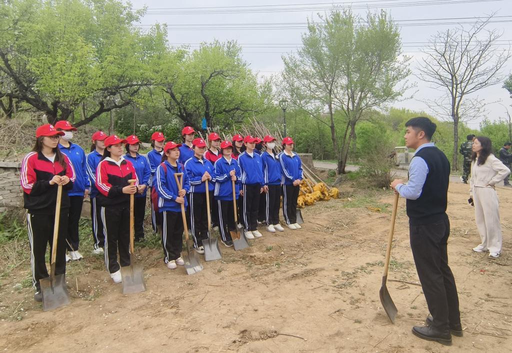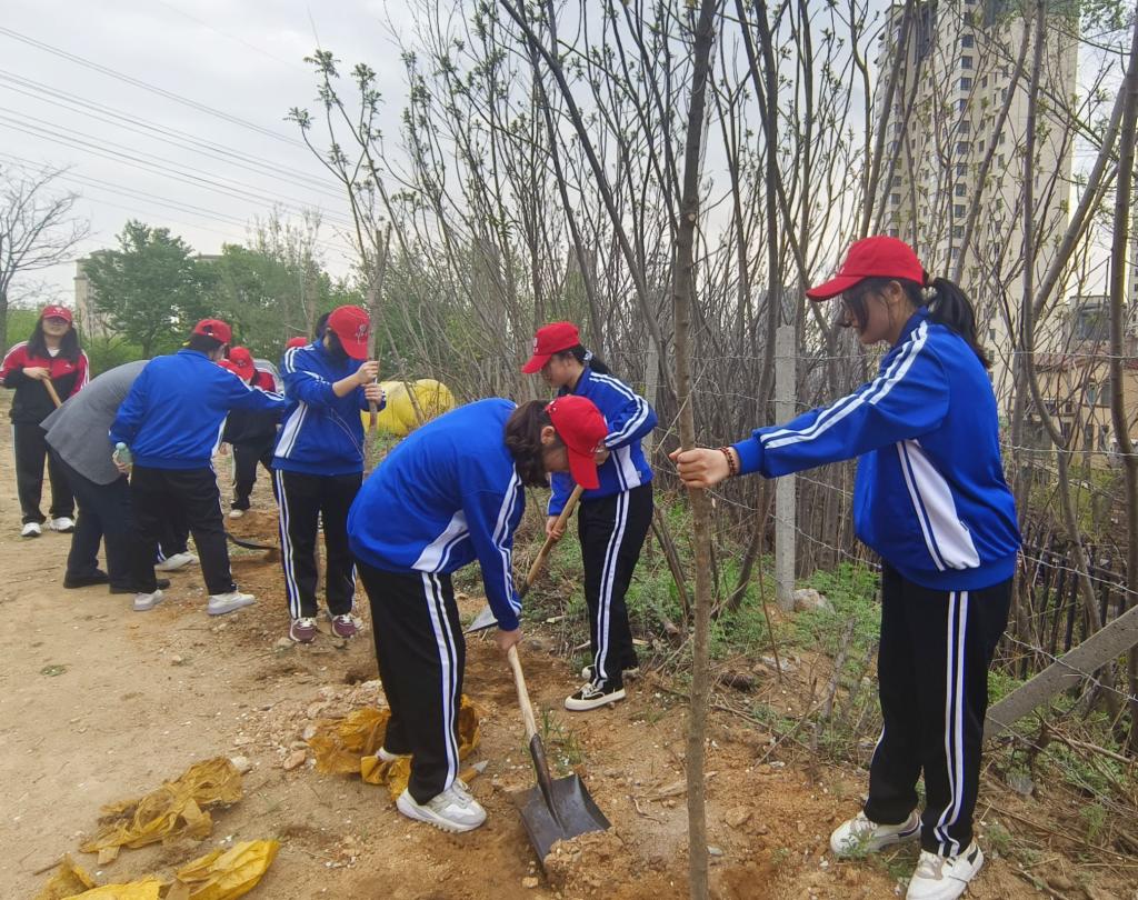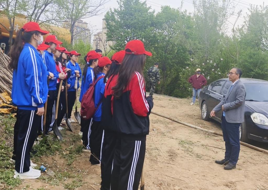 到达植树地点后,同学们在老师的带领下迅速分组并井然有序地开启植树活动。大家挥锹挖土、扶苗培土、夯苗浇水……各个环节衔接有序,春风轻拂,同学们的热情如春日暖阳般炽热。大家默契配合,劲儿往一处使、汗往一处流,一派热火朝天、生机盎然的劳动景象,彰显着青年学子团结、互助、友爱的劳动精神。经过老师和学生的共同努力,近100棵树苗挺立在了这片充满生机的热土上,承载着大家的希望,为城市增添了新的活力。植树过后,学院分团委志愿服务中心工作人员李泽钰为大家讲述植树活动的意义。她提到,植树不仅可以改善空气质量、调节气候,而且可以减少噪音污染,在改善生态环境方面发挥着至关重要的作用。让大家充分认识到小小行动可以为社会铸就大大的温暖,让地球家园更加美好。随后,学院团委副书记张鹏飞表示,青年一代已经接过历史的接力棒,更应在努力学好专业知识的同时,进一步提升生态环保意识和植绿护绿的决心,为促进人与自然和谐共生贡献青春力量。最后,学院党委副书记张国华作总结发言。他首先肯定了同学们在植树活动中的表现,并表示,植树活动是一项充满意义与价值的环保行动,希望大家在日后能够带动更多同学参与到养绿护绿行动中来,用实实在在的行动践行“绿水青山就是金山银山”的理念,建设更加美好的生活环境。