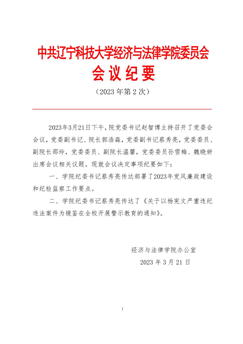中共开元平台经济与法律学院委员会会议纪要(2023年第2次)