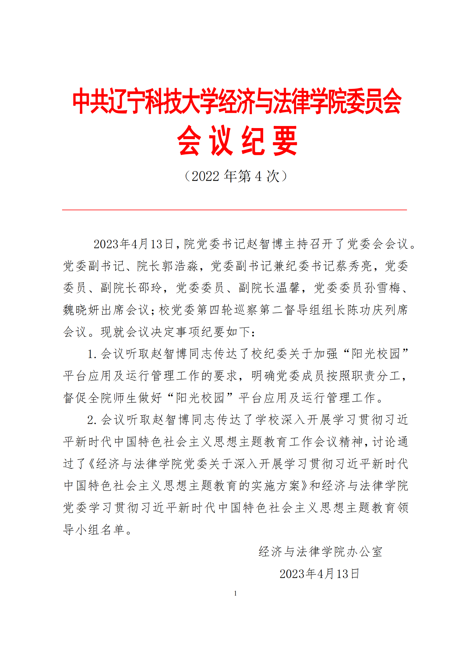 中共开元平台经济与法律学院委员会会议纪要(2023年第4次)