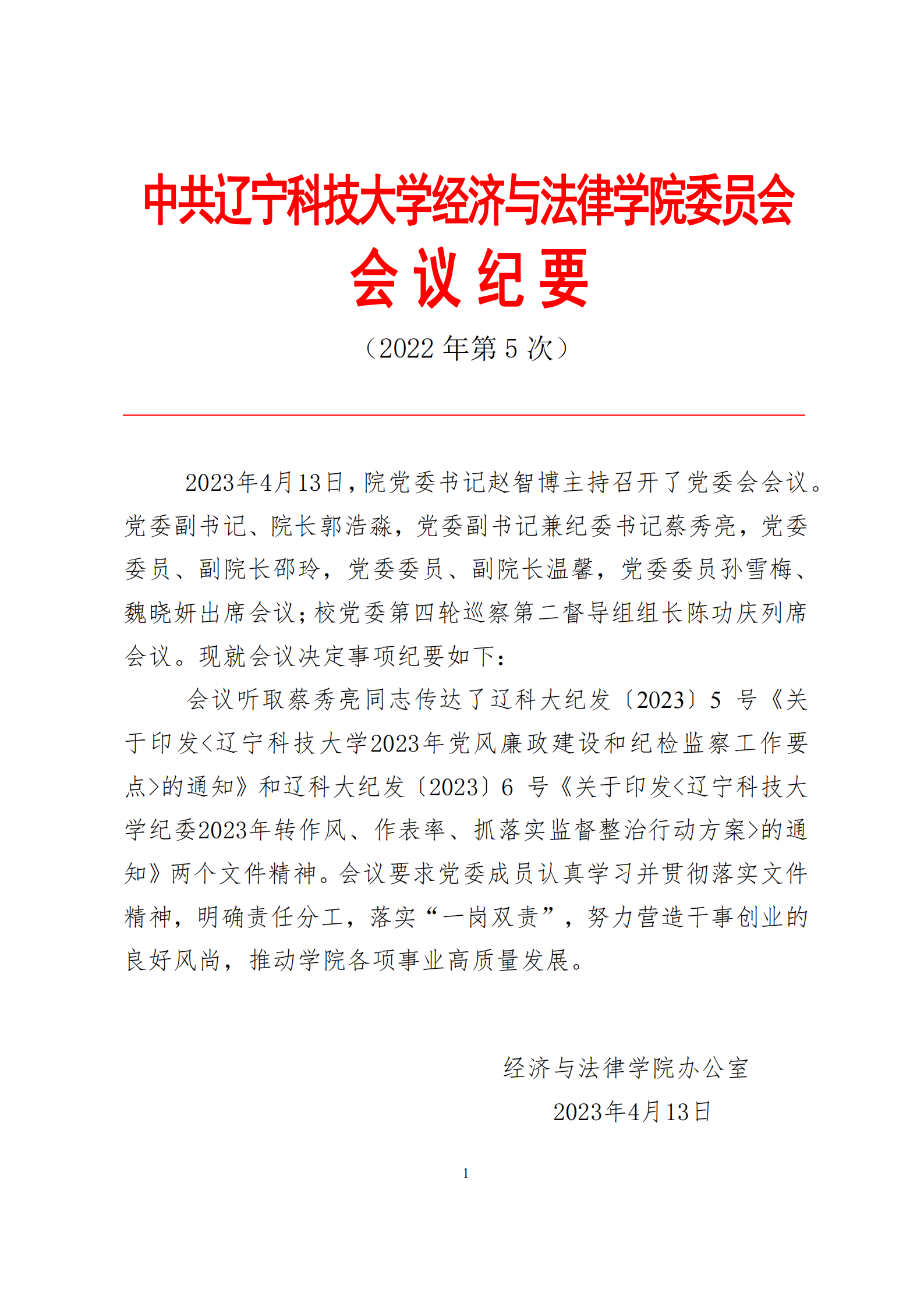 中共开元平台经济与法律学院委员会会议纪要(2023年第5次)