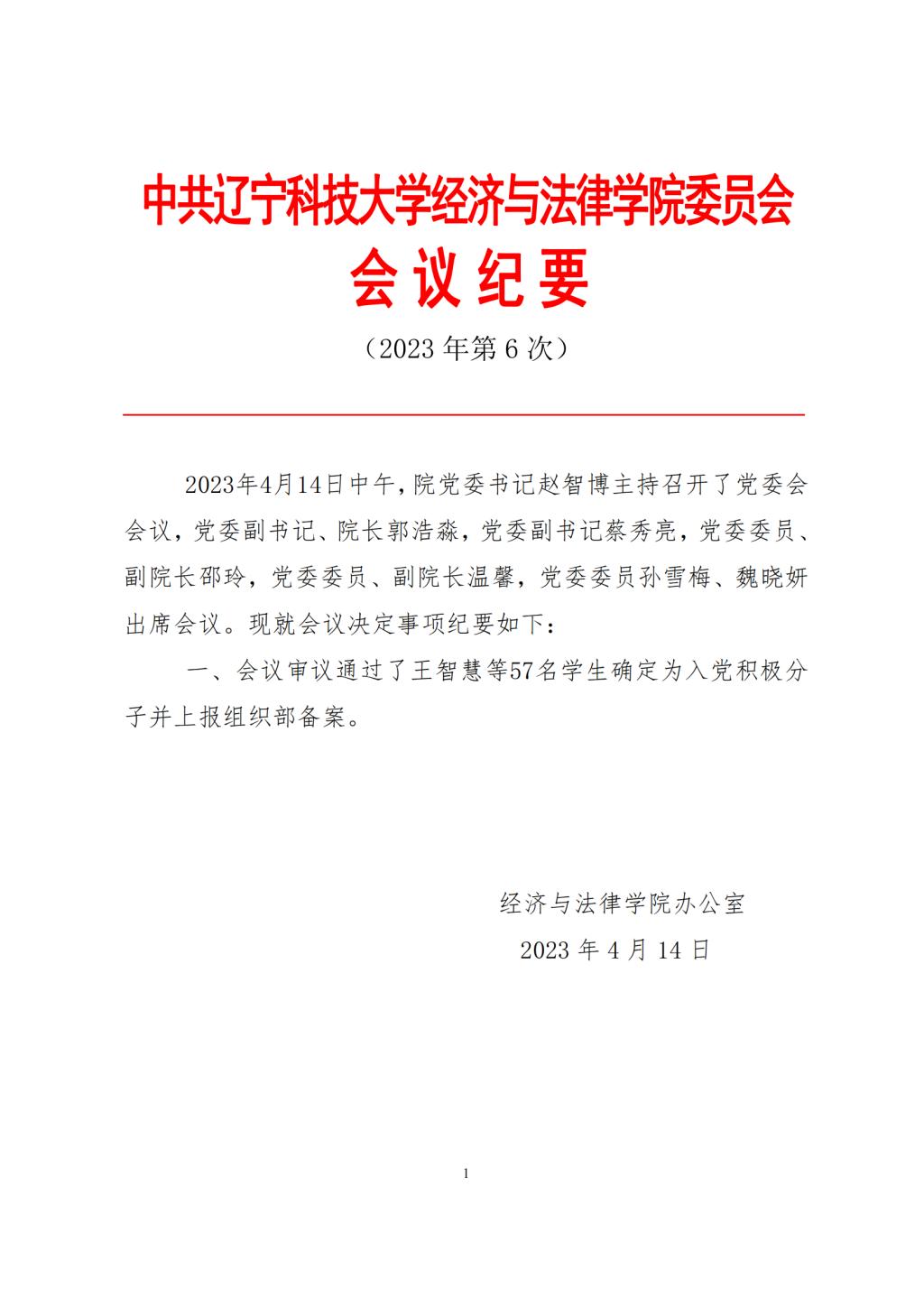 中共开元平台经济与法律学院委员会会议纪要(2023年第6次)